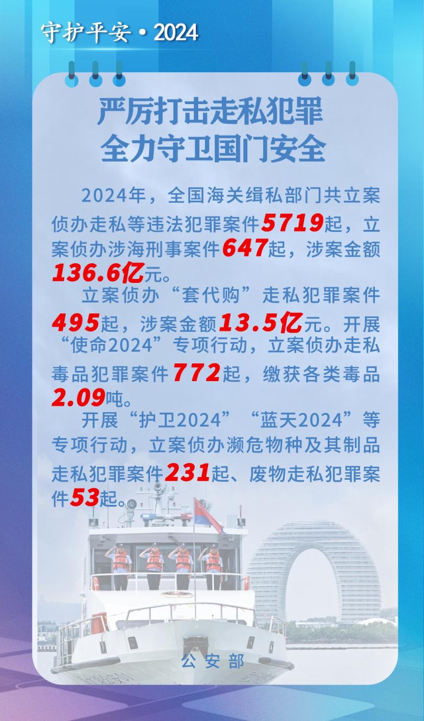 据介绍,2024年海关缉私部门聚焦海上成品油、香烟、冻海产品等重点涉税商品走私,强化与地方公安机关和海警部门的协作配合,立案侦办涉海刑事案件647起,涉案金额136.6亿元;查办涉海行政案件922起,涉案金额1.7亿元。